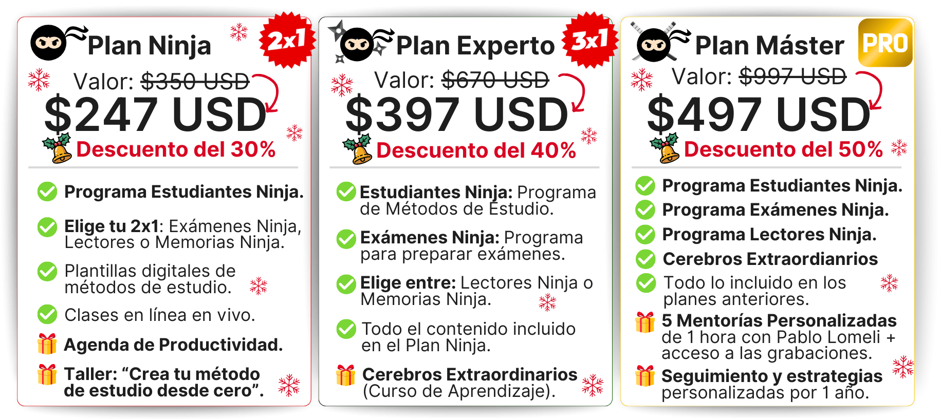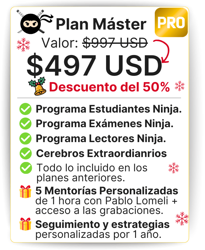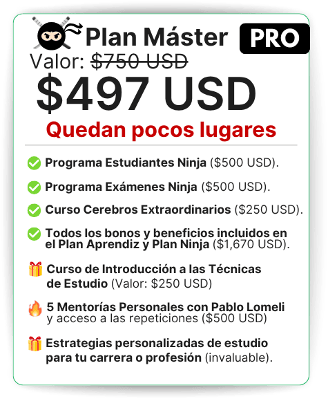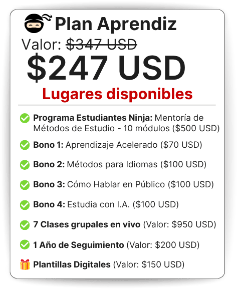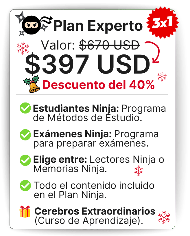 Por eso, en Estudiantes Ninja recibirás explicación de cada método de estudio paso a paso desde lo más básico a lo avanzado para adaptarlos a tus necesidades.
